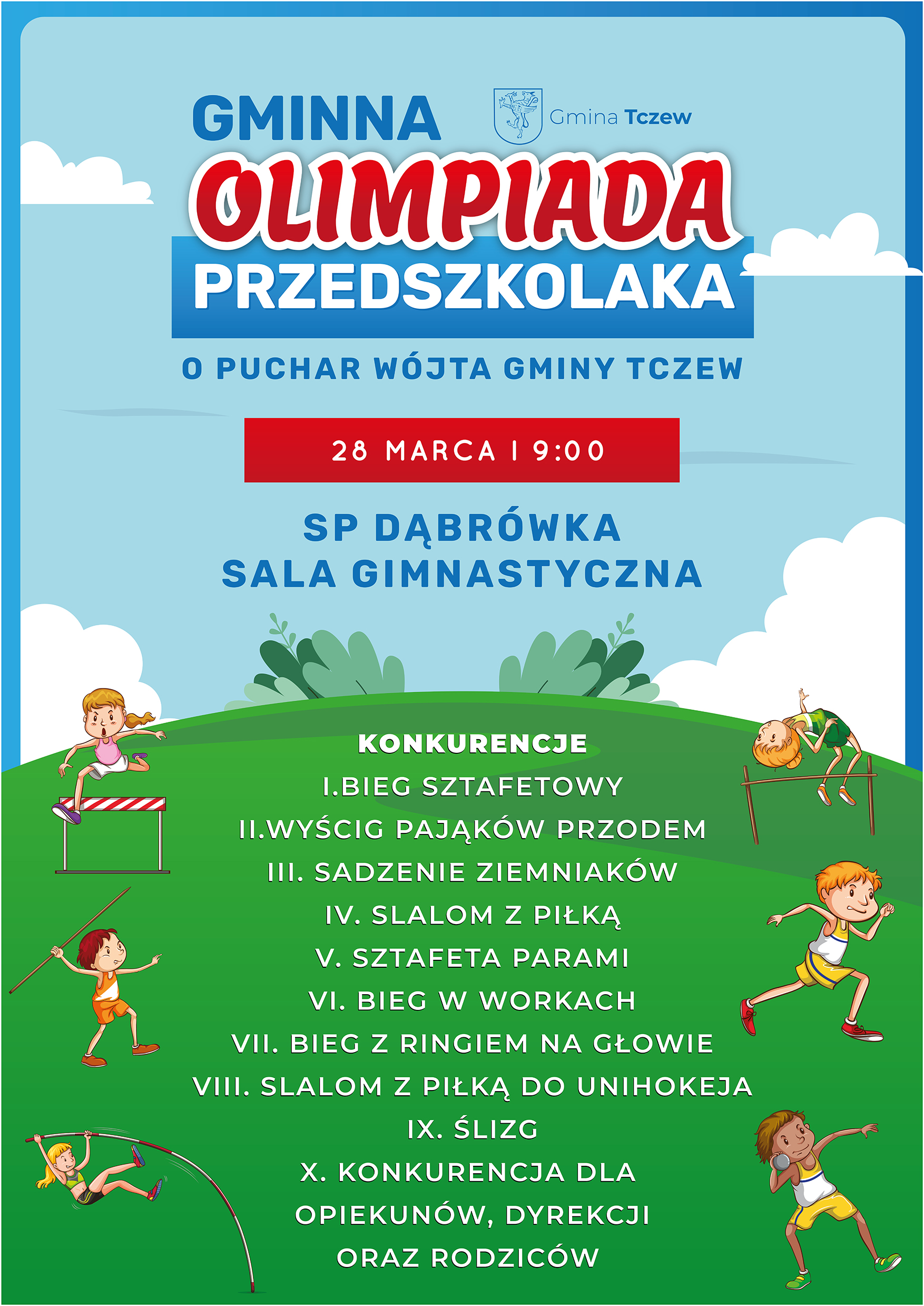 Przed nami sportowe zmagania najmłodszych, czyli IV Gminna Olimpiada Przedszkolaka o Puchar Wójta Gminy Tczew Krzysztofa Augustyniaka.