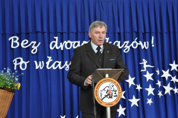 Opuszczacie dzisiaj mury szkolne po czterech latach wytężonej pracy, aktywnego uczestnictwa w wielu ważnych imprezach szkolnych i środowiskowych, owocnego udziału w licznych konkursach, turniejach i olimpiadach. Staraliśmy się stworzyć Wam atrakcyjne środowisko wychowawcze, sprzyjające kształtowaniu Waszej osobowości, przygotowaniu do życia w społeczeństwie obywatelskim, przyswajaniu uniwersalnych wartości etycznych oraz umiłowaniu naszej małej ojczyzny. Mam pewność, że jesteście dobrze przygotowani do zawodu, dalszych etapów kształcenia oraz funkcjonowania w trudnych warunkach gospodarki rynkowej– mówił dyrektor szkoły Jerzy Cisewski.