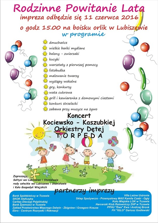 11 czerwca 2016 r. odbędzie się Rodzinne Powitanie Lata w Lubiszewie. Szczegóły na plakacie. Serdecznie zapraszamy do wzięcia udziału w imprezie!