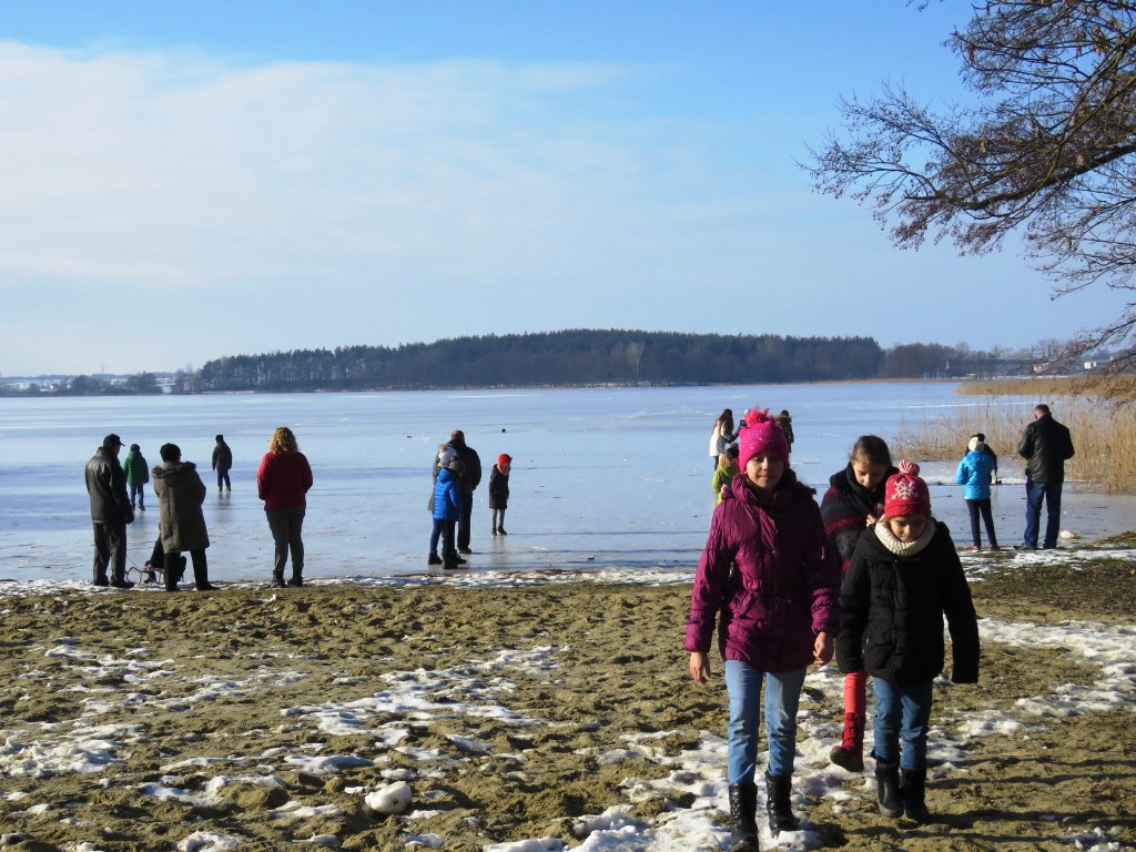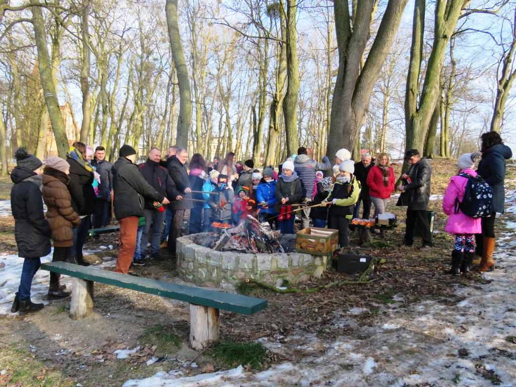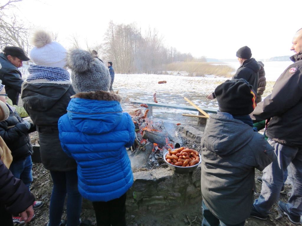 Zaraz po Mszy Św. wszyscy, tj. dzieci młodzież i dorośli zostali zaproszeni na pieczenie kiełbasek przy ognisku rozpalonym nad jeziorem. Pogoda sprzyjała, lekki przymrozek, utrzymujący się śnieg, zamarznięte jezioro i słoneczne niebo sprawiły, że krajobraz był śliczny.