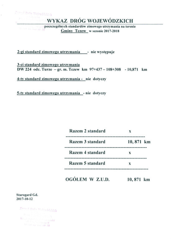 Informacja na temat zimowego utrzymania dróg wojewódzkich obowiązujące w sezonie zimowym 2017/2018 na terenie Gminy Tczew.