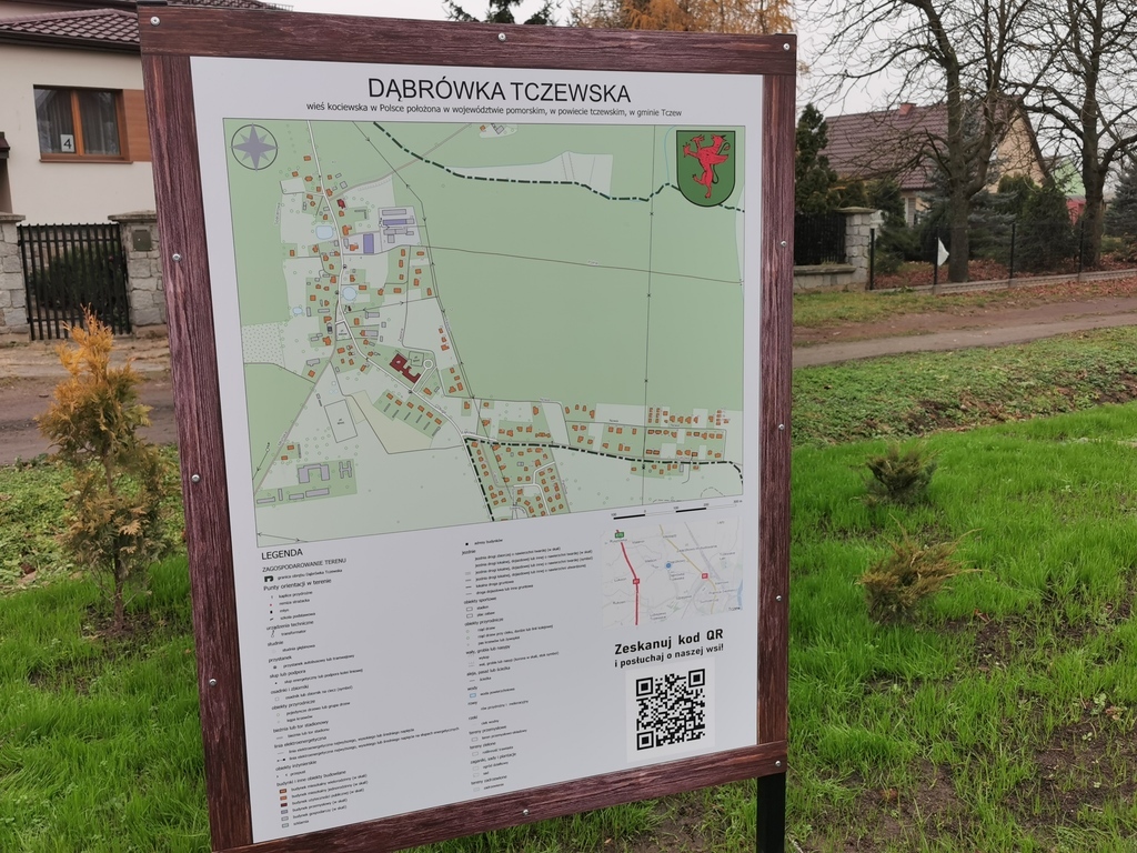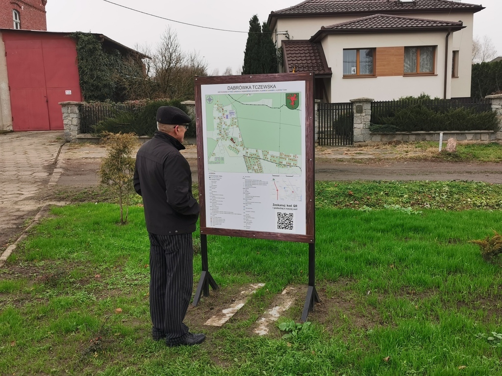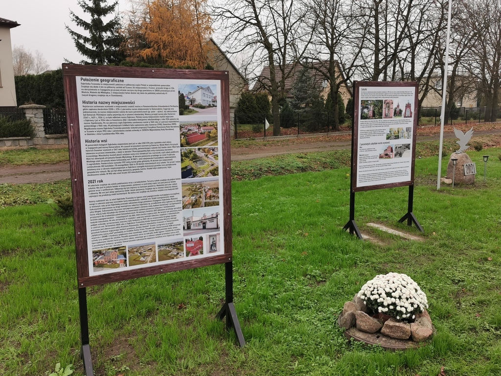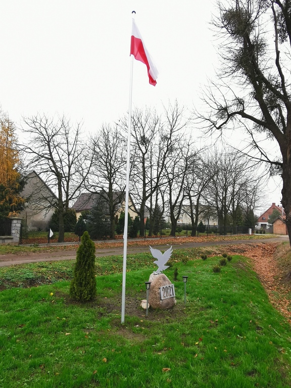 Niedaleko powstał skwer, gdzie pojawiły się 3 duże tablice informacyjne nt. historii sołectwa, zabytków, jest aktualna mapa wsi z nazwami ulic, są wymienieni sponsorzy wspierający działania mieszkańców. Nie zabrakło akcentów patriotycznych jak powiewająca flaga Polski na maszcie czy piękny orzeł przytwierdzony do głazu.