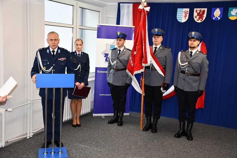 Mł. insp. Robert Fiorek, nowo powołany Komendant Powiatowy Policji w Tczewie, podziękował za zaufanie oraz wsparcie, zapewniając o dalszym zaangażowaniu i wysokim poziomie pracy jednostki.