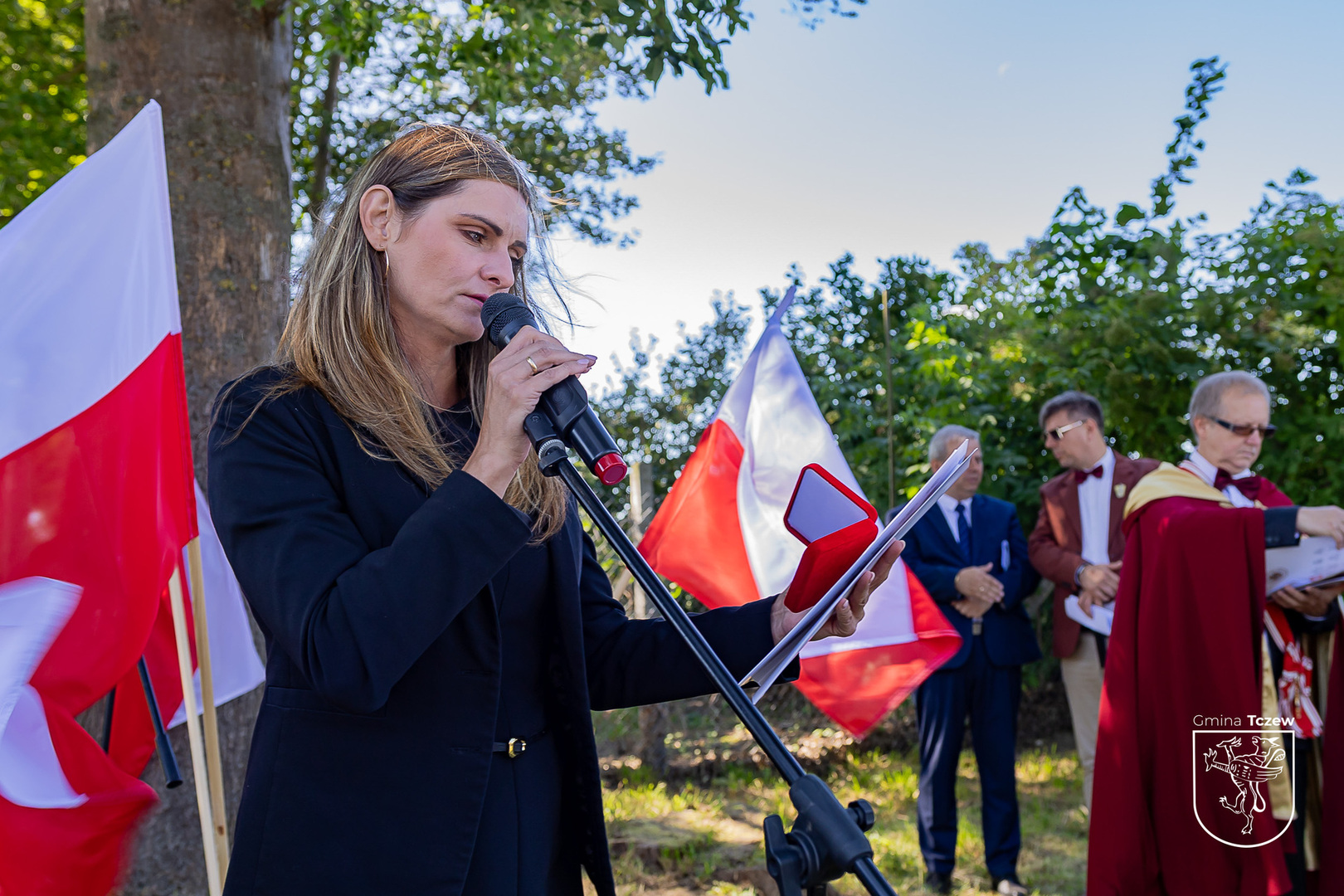 – „Pamięć o tych, którzy oddali życie, buduje naszą wspólnotę. Dzisiejsza uroczystość ku czci Michała Różanowskiego jest okazją, by wspólnie oddać hołd, zatrzymać się na chwilę w refleksji nad przeszłością i umocnić więzi między ludźmi. To ważny element naszej narodowej tożsamości i dziedzictwa, który pozwala młodszym pokoleniom dostrzec cenę, jaką ponieśli ich przodkowie w walce o wolność i niepodległość. Upamiętnianie bohaterów wojennych pełni także funkcję edukacyjną – uczy o realiach wojny, znaczeniu obrony ojczyzny oraz wartościach związanych ze służbą dla kraju. Cześć i chwała Bohaterom” – podkreśliła Katarzyna Beringer-Kusio, w imieniu Wójta Gminy Tczew, Krzysztofa Augustyniaka.