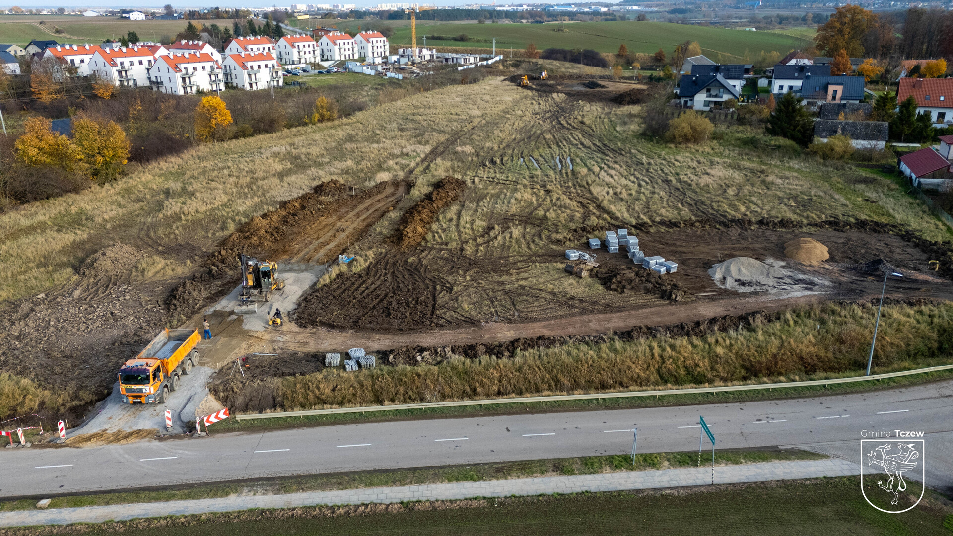 Prace na placu budowy ruszyły pełną parą. Na działce pojawił się już ciężki sprzęt, a firma BARSZCZYK BUDOWNICTWO Sp. z o.o. rozpoczęła pierwsze roboty.