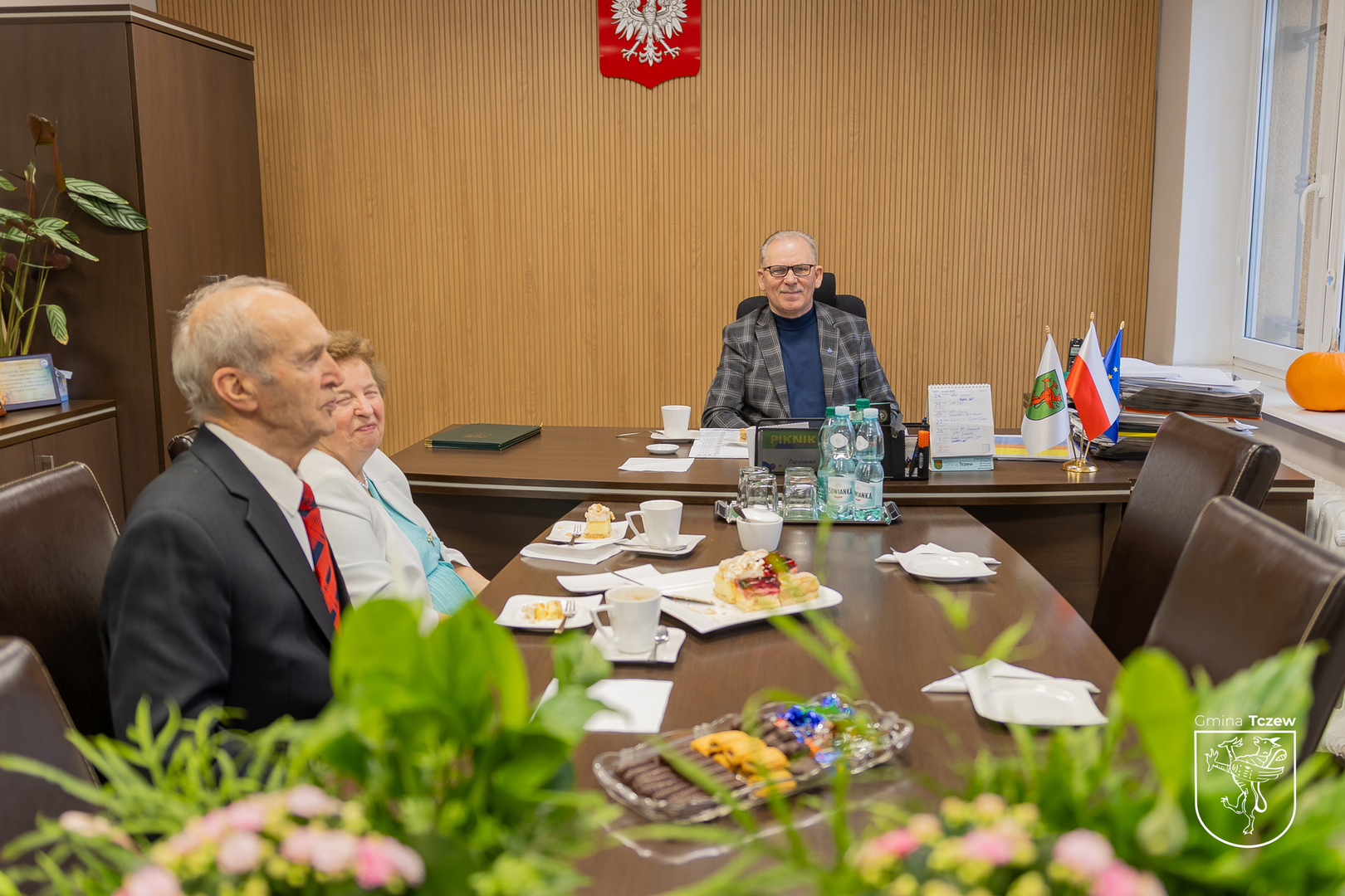 Spotkanie z Wójtem Gminy Tczew Krzysztofem Augustyniakiem, przy aromatycznej kawie i domowym cieście, upłynęło w atmosferze pełnej wzruszeń, wspomnień i wdzięczności. Jubilaci obecni w urzędzie otrzymali pamiątkowe listy gratulacyjne oraz upominki od Gminy Tczew.