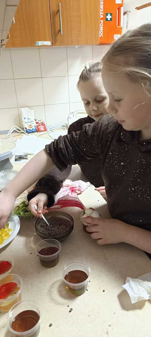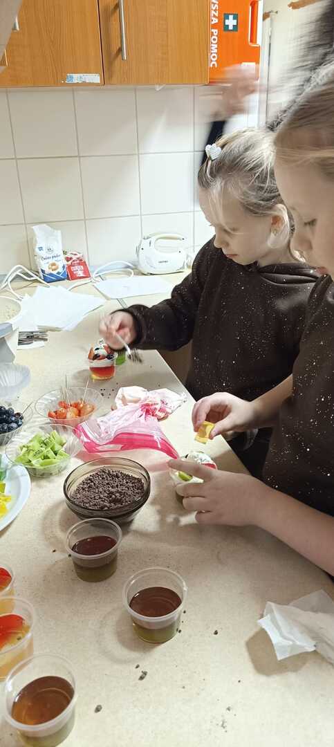 Młodsi uczestnicy z zaangażowaniem przygotowywali słodkości dla swoich starszych sąsiadów, dumnie prezentując swoje umiejętności dekorowania i serwowania.