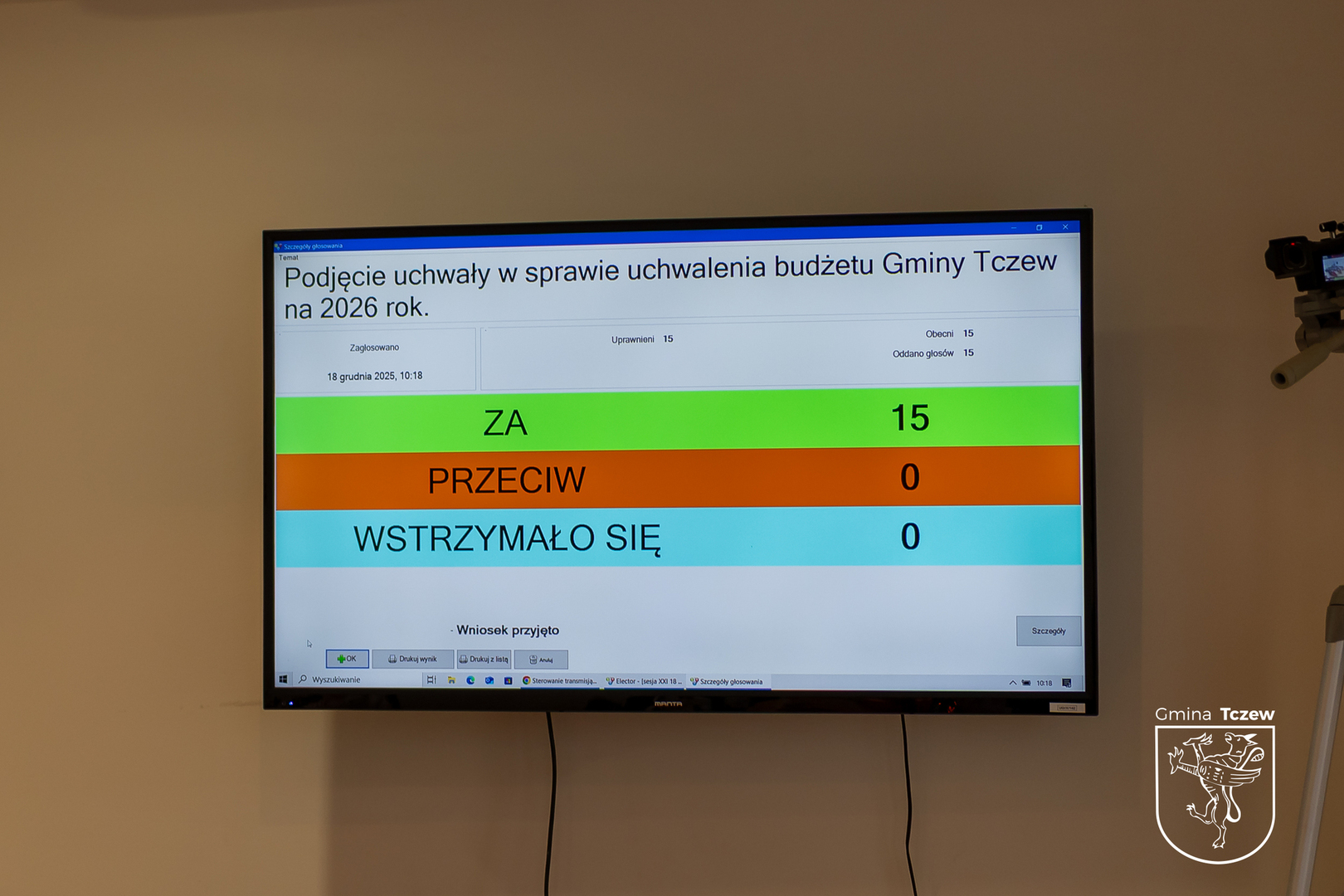 Rada Gminy Tczew, podczas ostatniej już w tym roku XXI Sesji, jednogłośnie uchwaliła dzisiaj budżet gminy Tczew na 2026 rok.